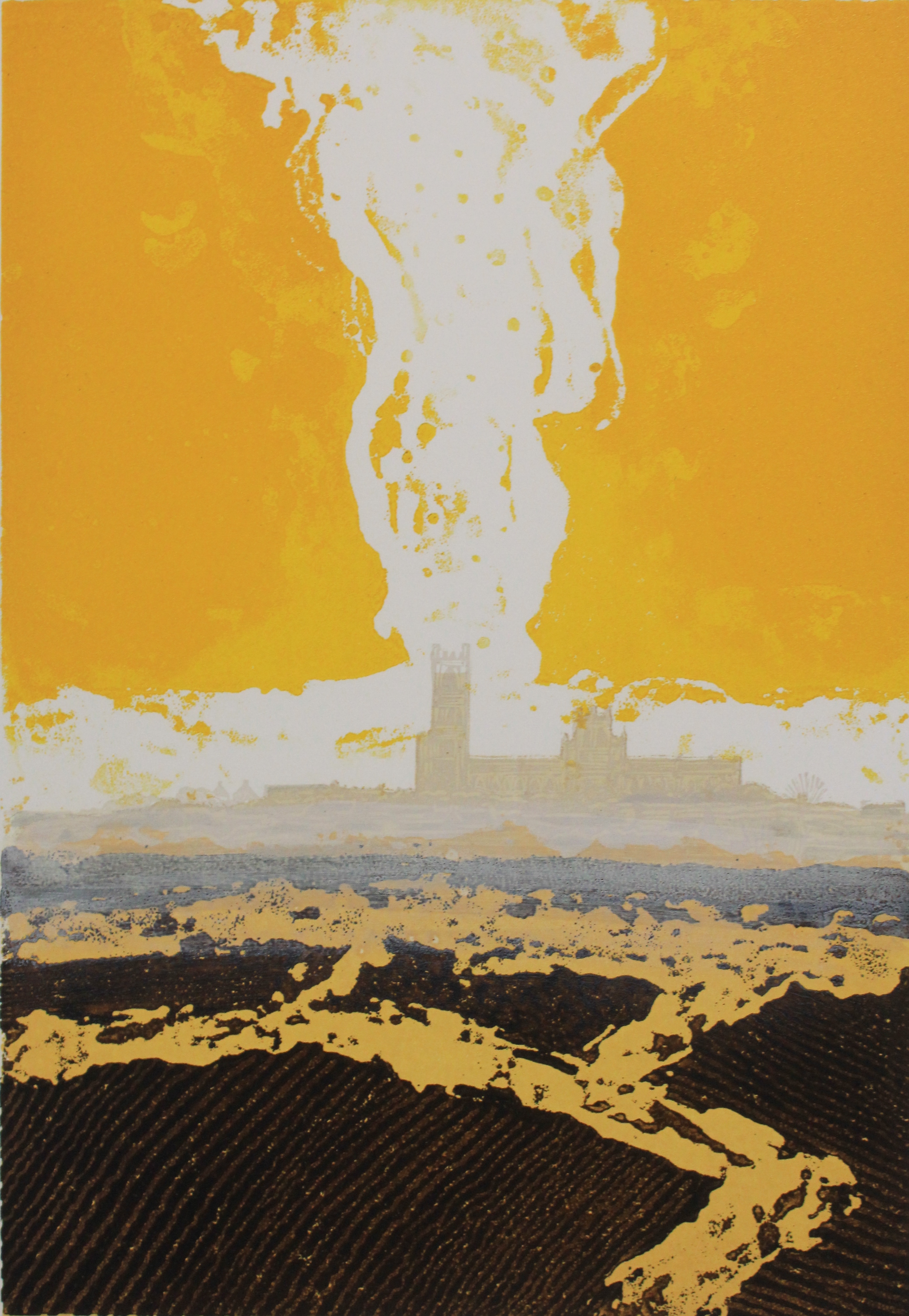 Stairway to Heaven. Linocut in seven colours printed on 300gsm Fabriano Artistico Extra White HP. Image size 350mm x 250mm. £150.00