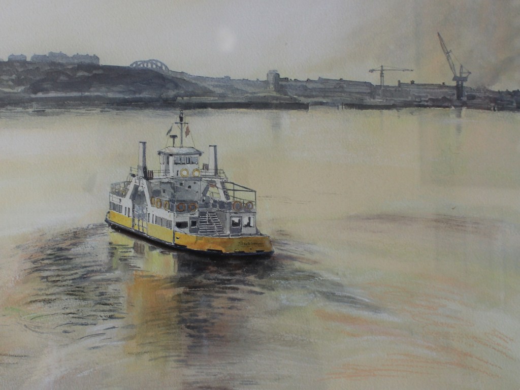 This time a drawing from a workbook that goes back to 1993. The original sketch, which was drawn from a vantage point above the North Shields Ferry landing shows the ferry heading back across the Tyne to to the South Shields Ferry landing. The drawing was worked up into this state to work out colours and composition in preparation for either a linocut or a woodcut. I could never make my mind up which route or print process to go with and subsequently the project was overtaken by others and it has been forgotten about ever since then. Now I’m thinking of reviving the project again but predictably I still can’t make my mind up which print route to take. Below the colour sketch is a photograph, taken during the summer of 1965, of the North Shields Ferry when it was a coal burner judging by the smoke and pollution, but it’s still an interesting image.