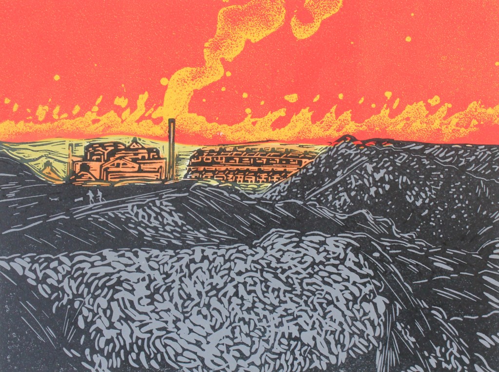 As part of my housekeeping project on the blog, you know dusting, cleaning the windows and beating the carpets, I’ve separated another print that was one of a pair and as such it didn’t appear on the illustrated contents page. As always the print was based on sketch book research and record making going back, yet again, to the middle of the sixties. The subject is the slag and spoil heaps from the steelworks on Teesside or it could equally be the spoil heap from an old ironstone mine, I’m afraid that I cannot remember the precise location but after the reworking process it is definitely a ‘based on’ interpretation of a particular subject. Either way the landscape is long gone now and has been reclaimed by either man or nature or maybe even both at the same time.