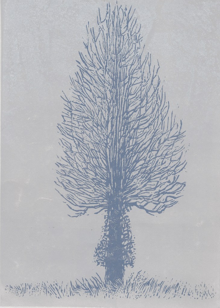 A stand of Poplar trees view from the end of the line in the fog. There’s nothing like an all enveloping Fenland fog everything goes quiet, all you can hear is the odd crow or pigeon their calls muffled by the grey blanket, suddenly it’s a different. The three colours used in this print didn’t scan too well so apologies for that, the colours were perhaps a little subtle but they are OK to the naked eye. This is my last experiment with Japanese paper, well I haven’t got any more left, but the West Norfolk landscape will the main subject of the new prints and they will be printed using no more than three colours. Now it’s time to rub down the press with an oily rag and await the arrival of the grandchildren and the excitement that they will bring with them, a very merry Christmas everyone.
